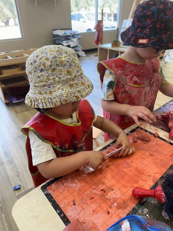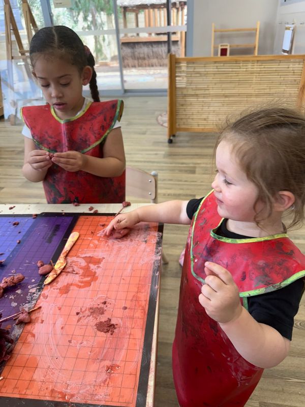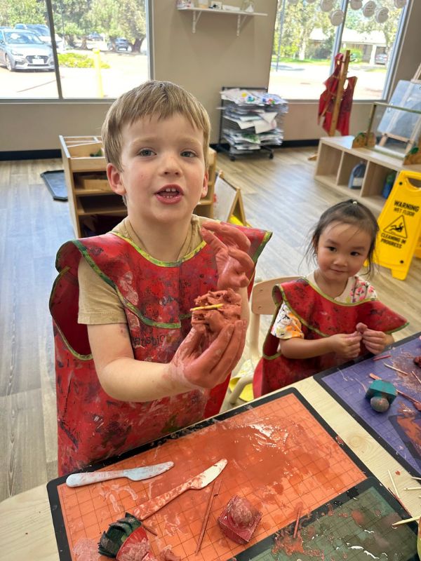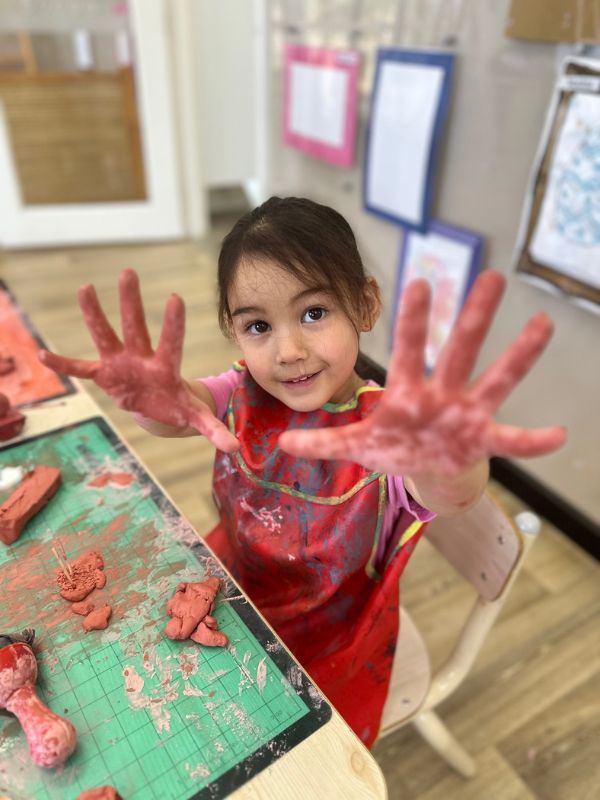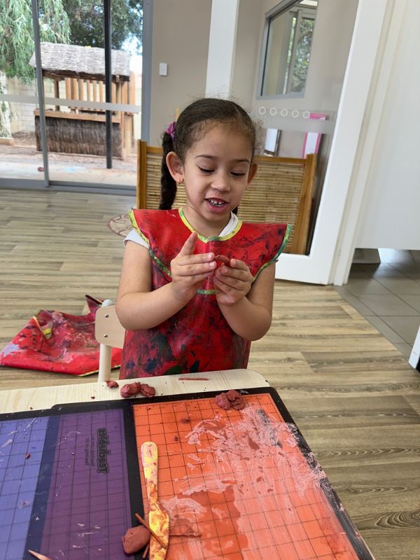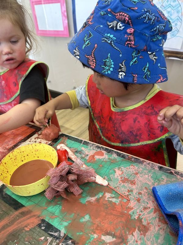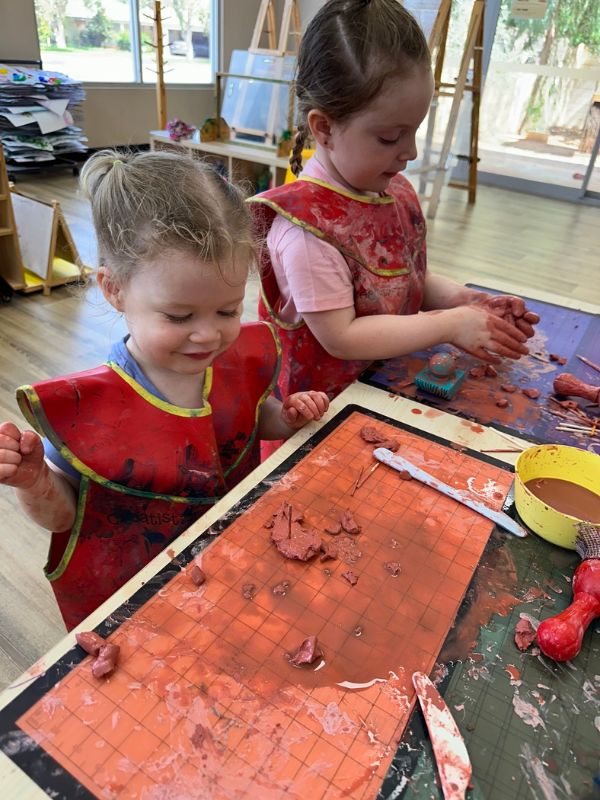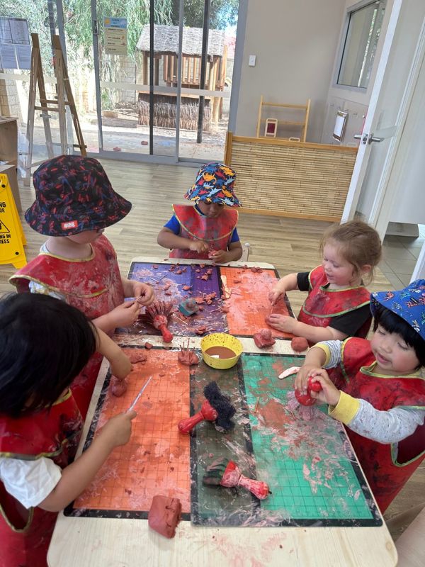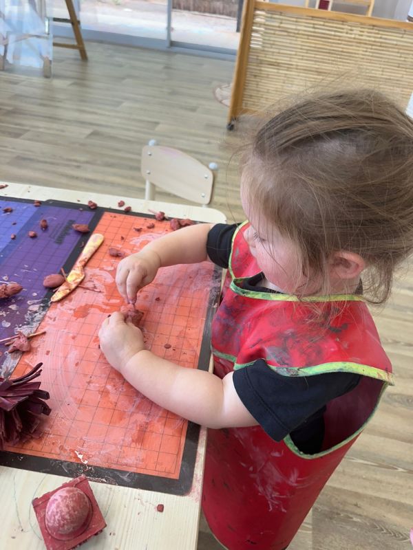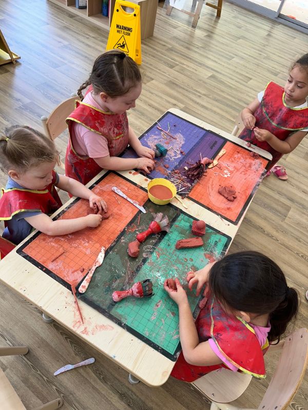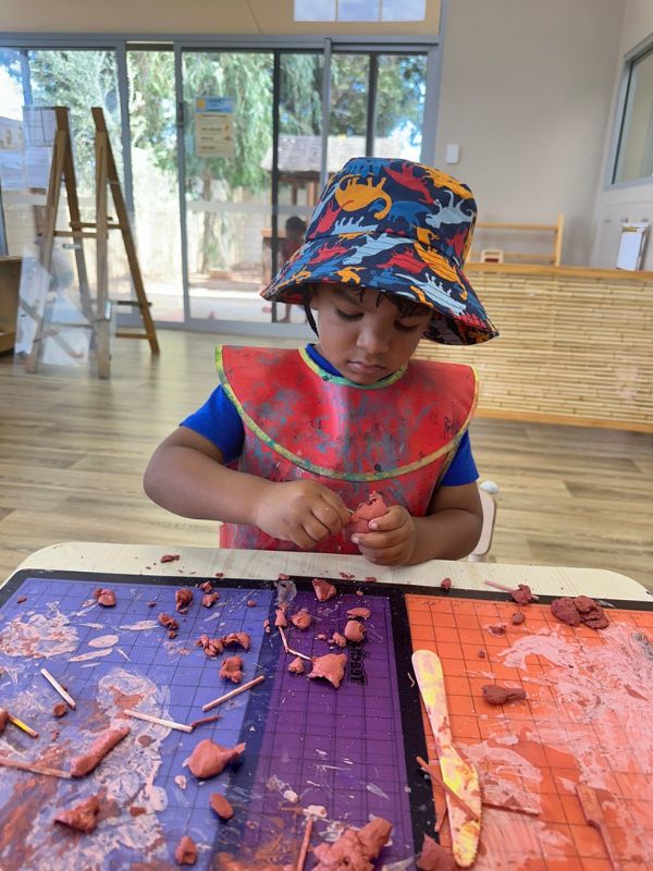 Children started by expressing the clay was hard, and not soft like playdough, but persisted onwards and used their fine motor skills to manipulate and manoeuvre the clay around and into shapes and formations.