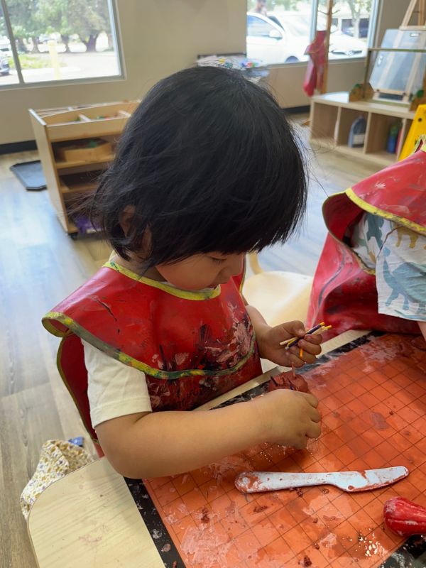 Some children added match sticks to theirs, creating pizza, cake, snowman and other things. Others just manipulated the dough, adding water when needed.