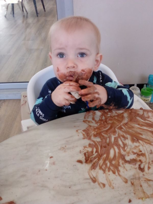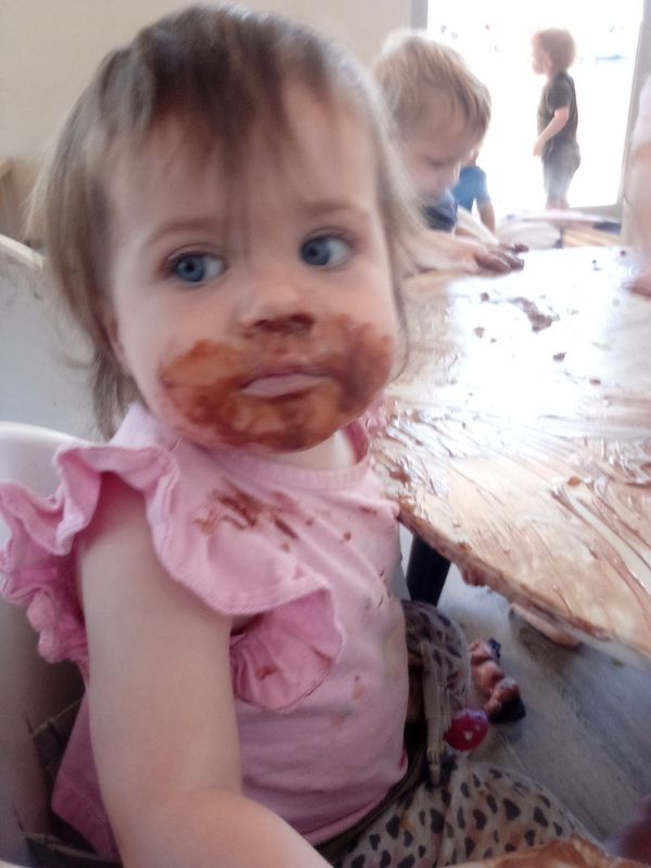With our interests surrounding farm animals, farm songs, and farm puppets, Beck planned for the children to explore their senses with the use of dairy-free coconut yoghurt and cocoa powder to turn brown like mud and a range of farm animals.