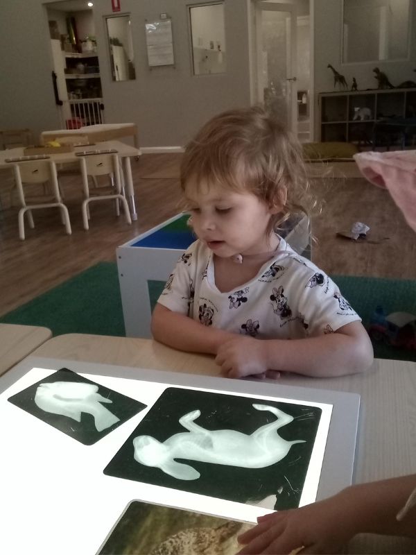 This week the children at Sonas Bayswater have been engaging in science and technology by exploring the biology/make-up of animals on the light board. Each child had a turn at naming the animal, the sound the animal makes, and counting as many bones in each X-ray as they could. One of our Children even said that the X-ray shows the inside and the photo is the outside of the animal.