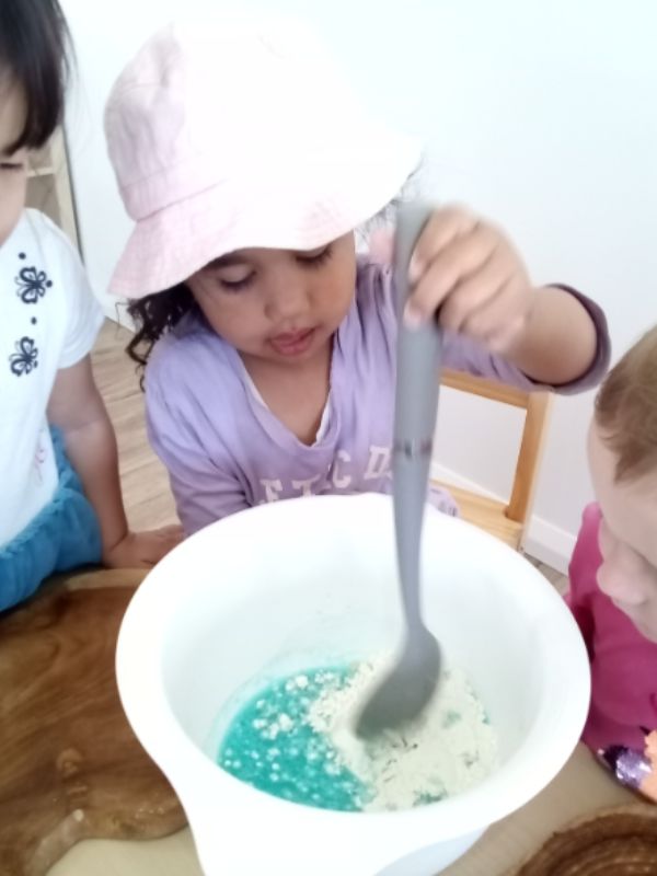 This afternoon, the children were invited into the arts studio to make some play dough at their request.
