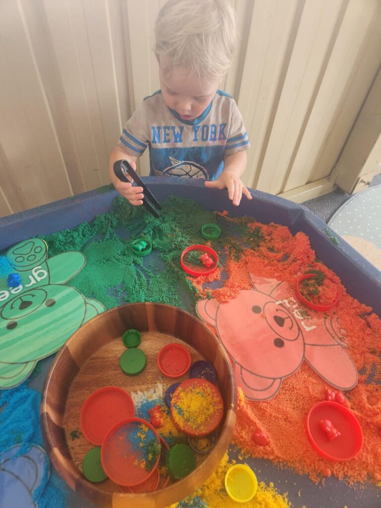 We help children recognise the different colours as help guild through picking up each bear or recycled lid to match to the coloured bear.