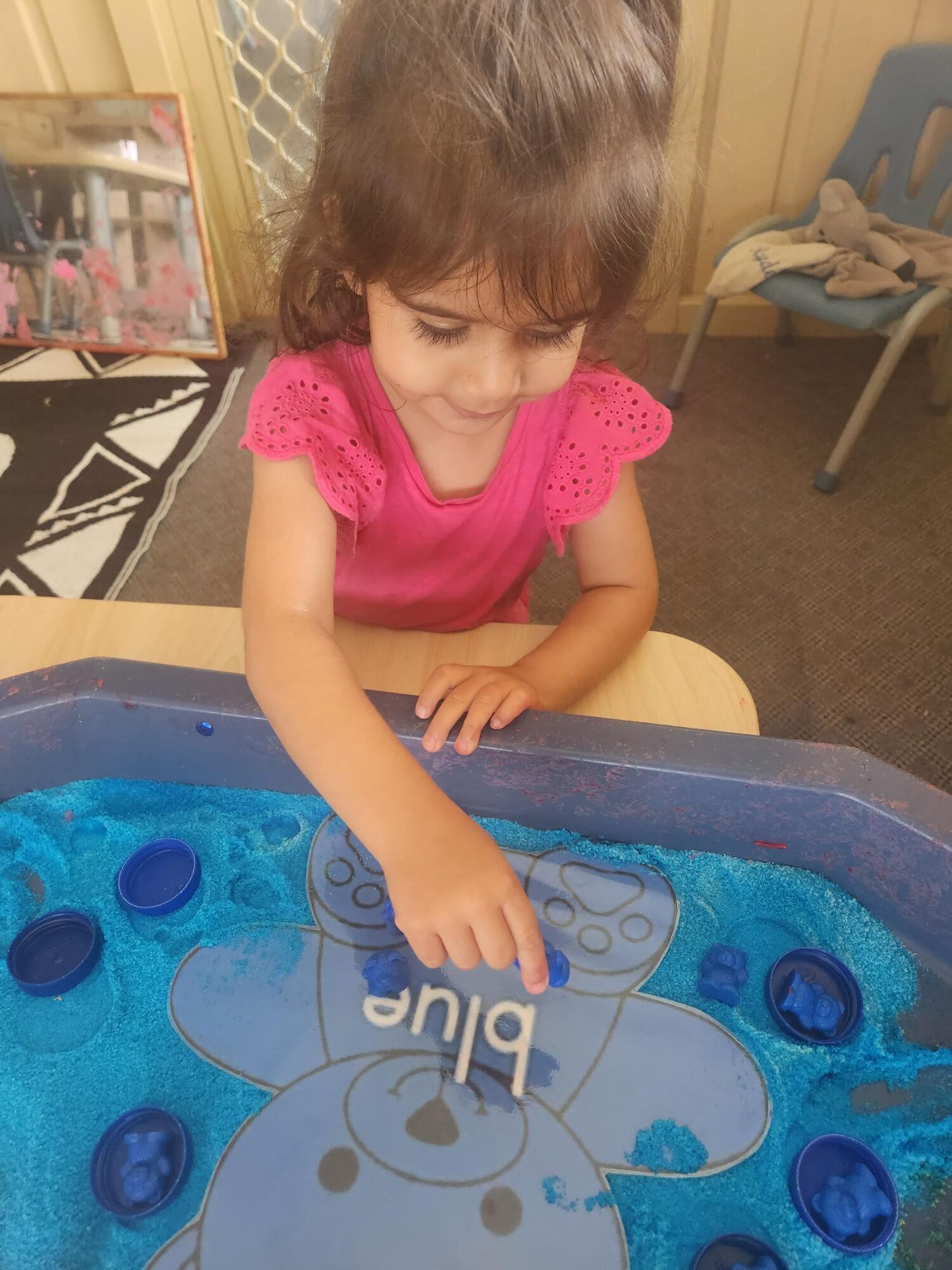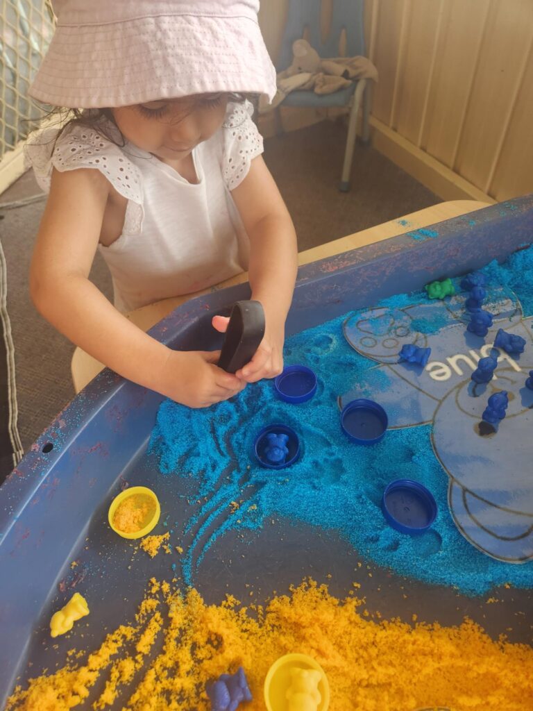 Extending from We’re Going On A Bear Hunt book, we created a colour recognition game with a blue bear, yellow bear, red bear and green bear.