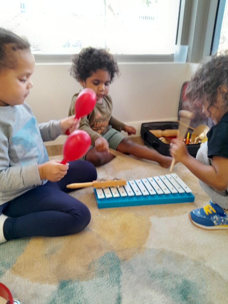 In our Arts Studio, we have been exploring sounds through musical instruments. The children listened to various music and beats and then had the opportunity to make their own music through various instruments.