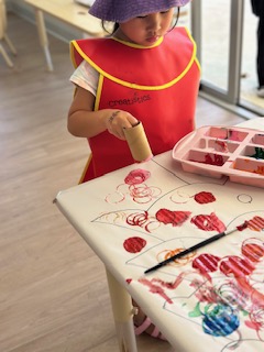 These activities help the children to develop their creativity and foster their self-expression and individuality. The painting and the play dough activity help the children to develop their fine motor skills.