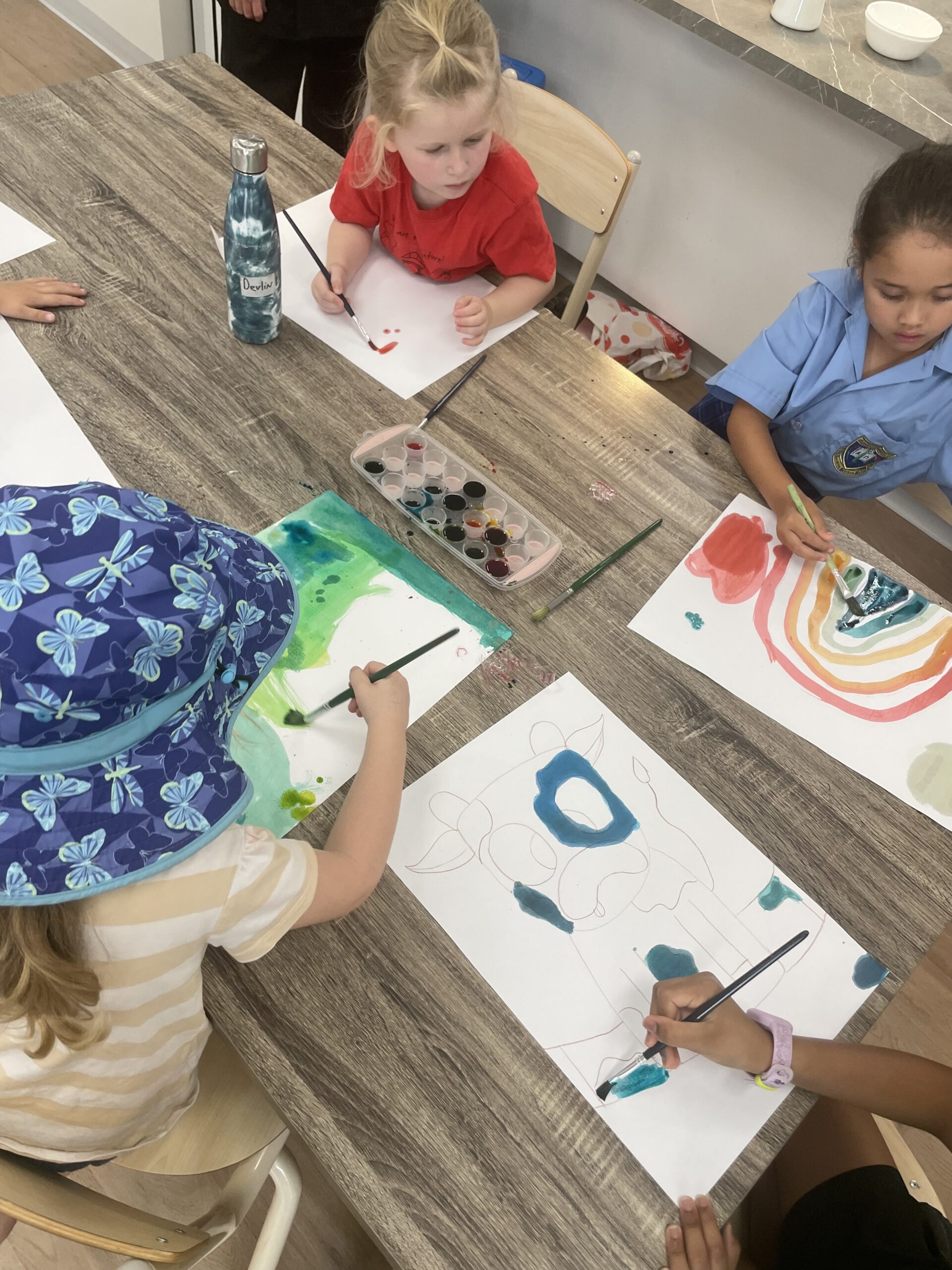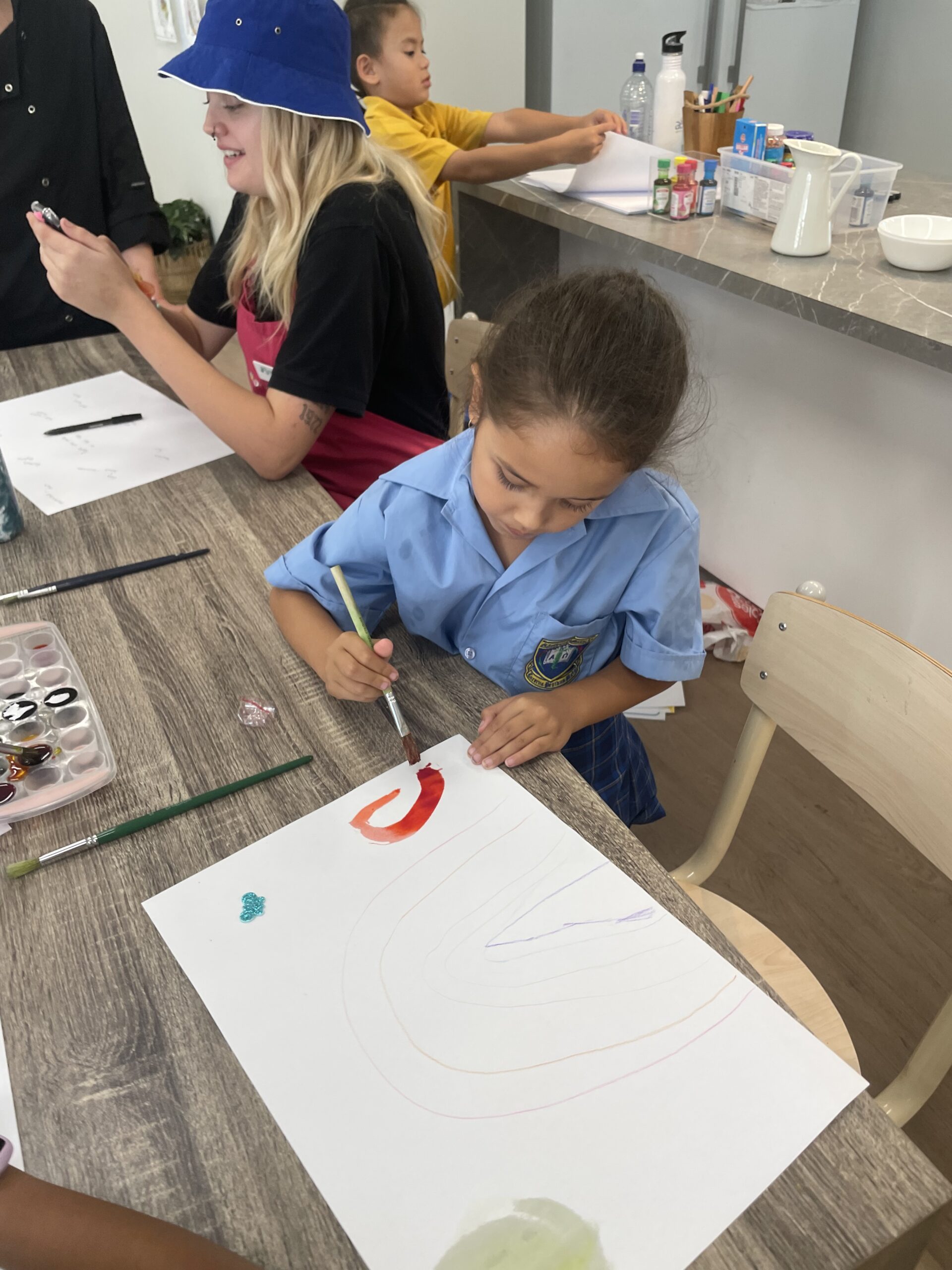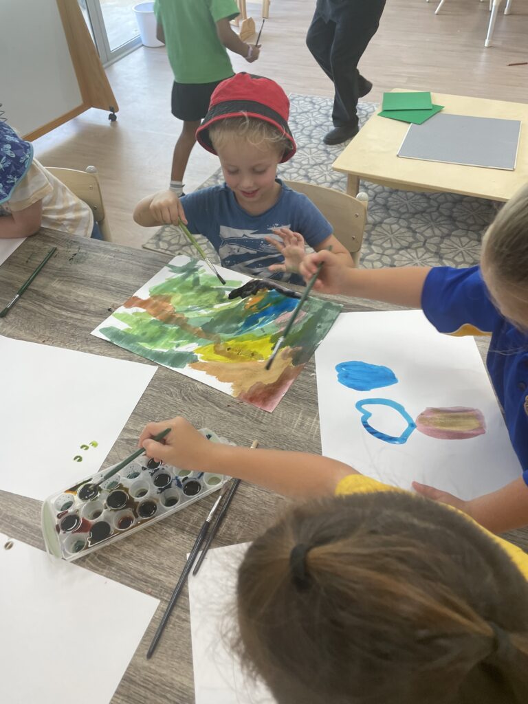 They then painted a rainbow using watercolour paints, and under the rainbow drew the people they saw in the exercise.